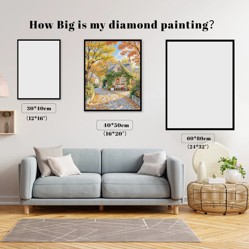This design is a warm embrace of the fall season. A charming ivy-covered cottage sits nestled among trees ablaze with golden and orange leaves. The cobblestone path, scattered with falling leaves, evokes cozy nostalgia and quiet welcome. This delightful project lets you create a masterpiece that captures the serene beauty and comforting magic of an autumnal home.