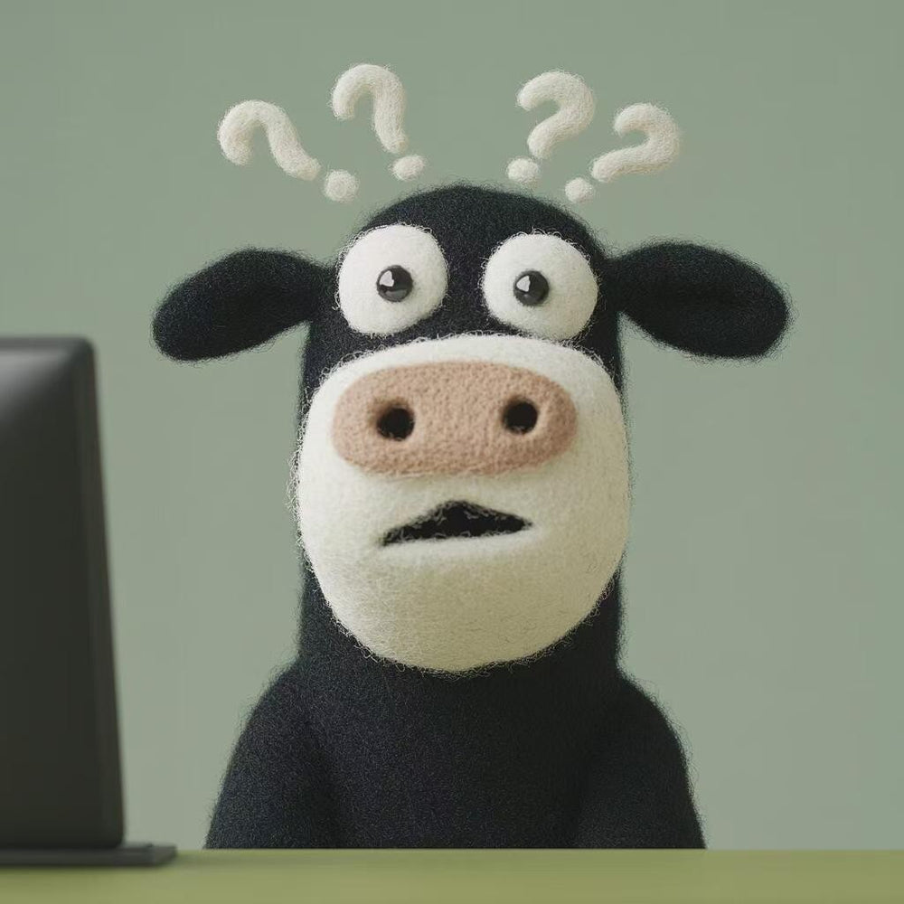 Doesn't this fluffy cow perfectly capture the daily grind? Staring blankly at a screen, this little guy feels like he came straight from a day at the office.