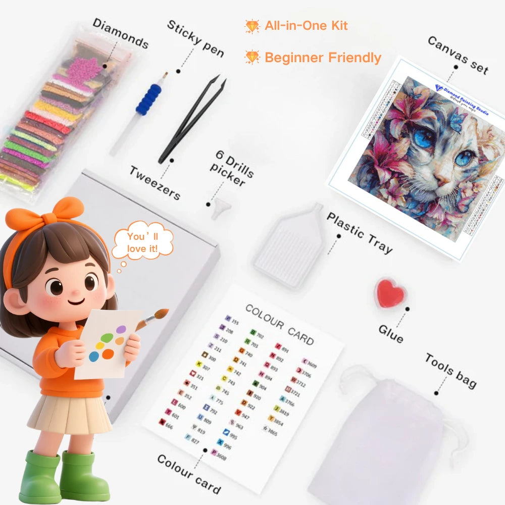 This Diamond Painting kit contains all the necessary materials to create your magic artwork: