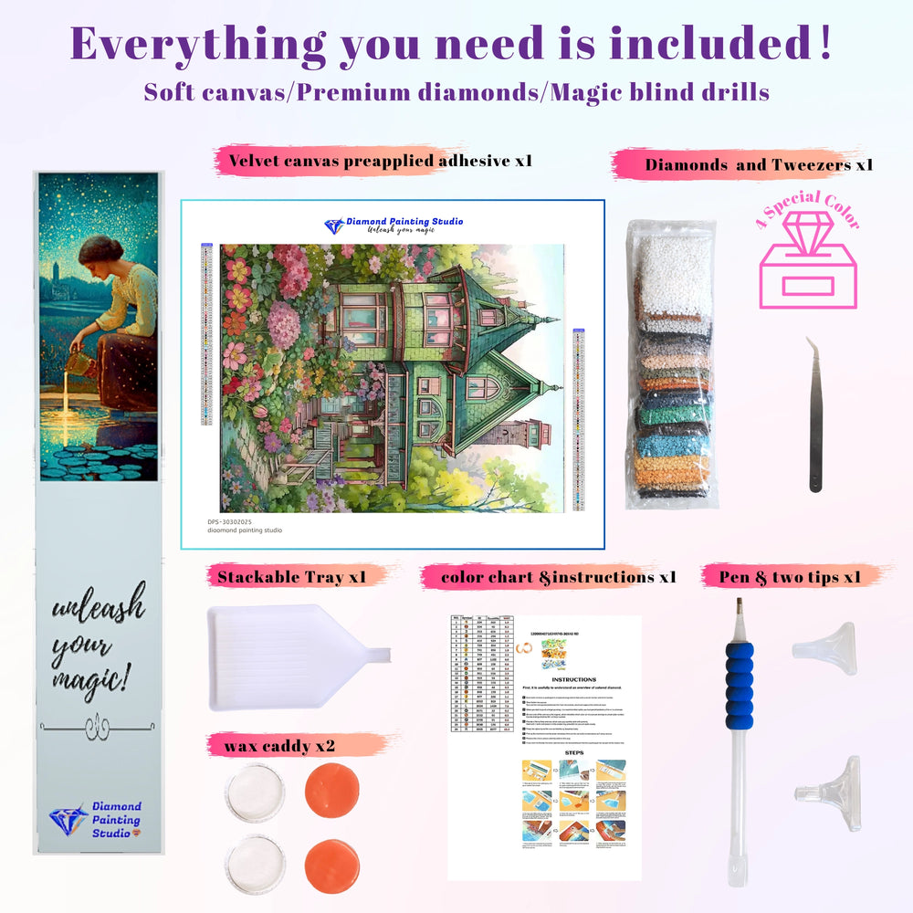 This design is a breathtaking escape into a secret garden. The charming Victorian cottage, painted in soothing greens, is almost entirely enveloped by an abundance of pink, purple, and yellow blooms. It evokes pure serenity and natural healing. This intricate project lets you create a masterpiece that captures the cheerful, comforting magic of a vibrant summer sanctuary.