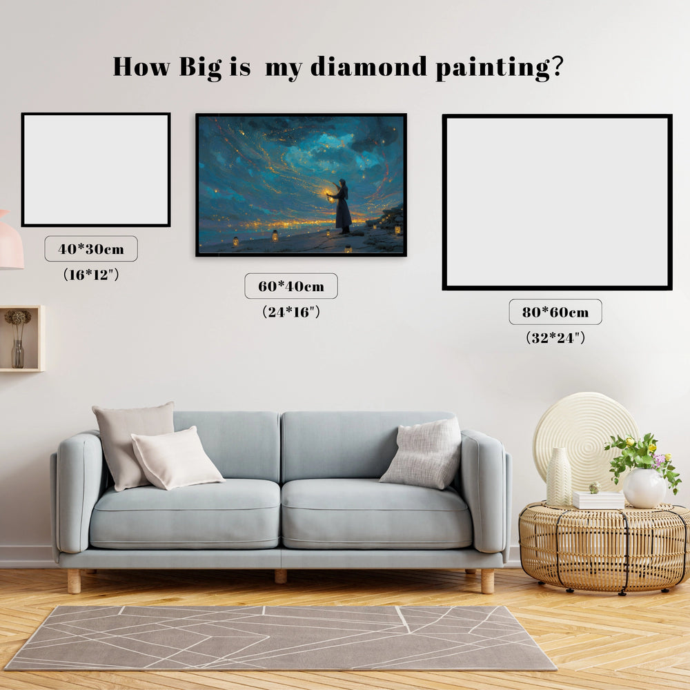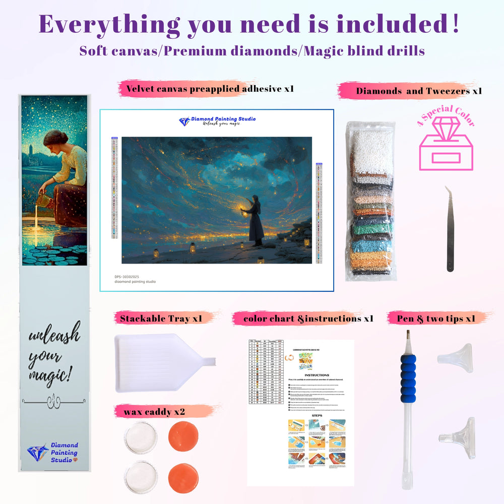 This design is a breathtaking vision of guidance and light. A lone figure stands on a shore, holding a glowing lantern beneath a mysterious, swirling night sky filled with starlight. The scene evokes deep contemplation and enduring hope. This immersive project lets you create a masterpiece that captures the magic of finding your way, even in the deepest darkness.