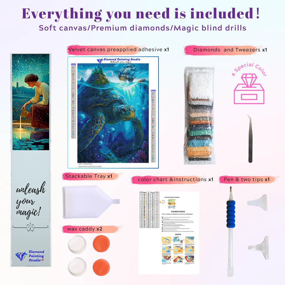 Let's be real, who doesn't love a beautiful sea turtle? This diamond painting kit captures a whole underwater world. Picture a giant sea turtle, swimming through a deep, colorful ocean. It’s not just a craft; it's a little bit of ocean magic you can create with your own hands. A perfect piece for anyone who loves the mystery of marine life.