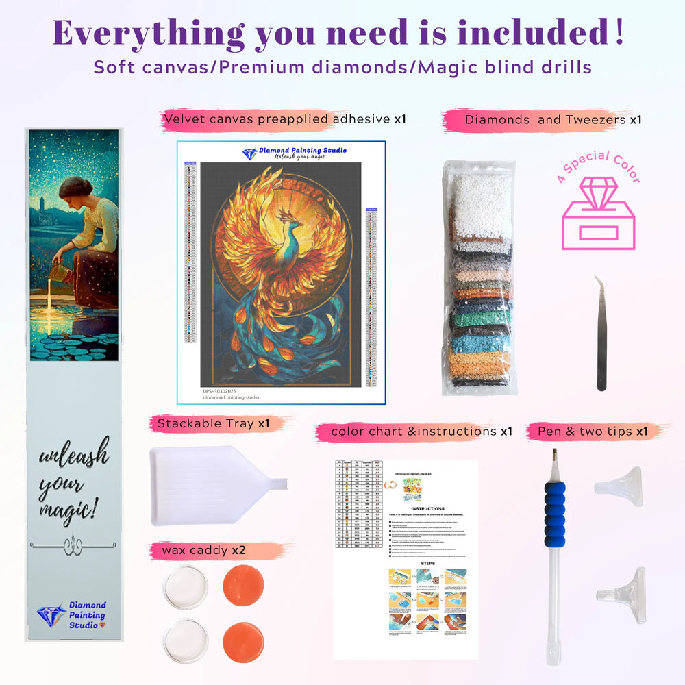 Have you ever seen anything so epic? This diamond painting kit is a total showstopper. It features a magnificent firebird, with fiery feathers that practically glow with warm oranges . If you want to create something truly bold that'll fill your space with energy, this is the perfect project for you. It's a true masterpiece in the making!