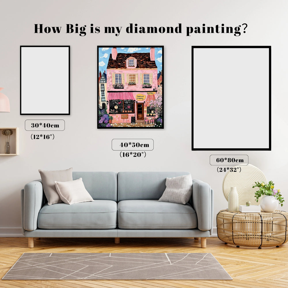 This design is a charming invitation to creativity and self-care. The pink-painted building houses a cozy cafe and drawing studio, framed by blooming flowers and a sunny sky. It evokes whimsical comfort and artistic tranquility. This delightful project lets you create a masterpiece that captures the pure joy of simple pleasures and the magic of a warm, welcoming space.