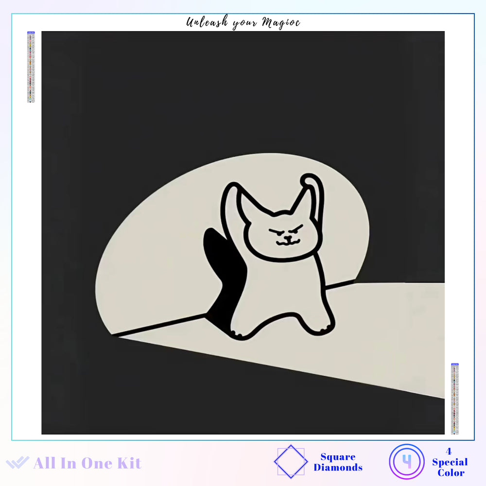A sly, minimalist cat stands in a spotlight, its smug grin creating instant charm. This funny black-and-white diamond painting kit transforms meme-inspired DIY diamond art into a relaxing craft project—ideal for cat lovers, modern design fans, and conversation-starting home decor.