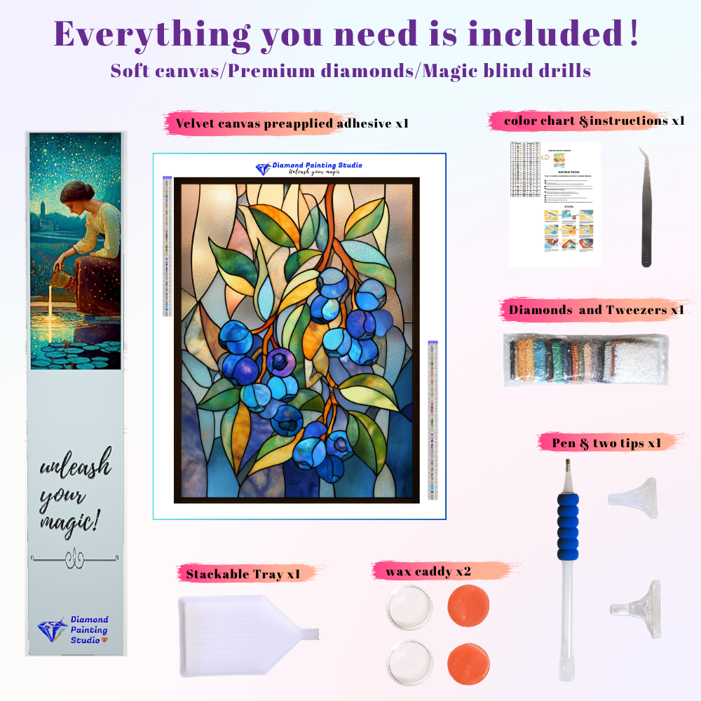 This design captures the cool, jeweled beauty of a summer harvest. The blueberries gleam with a realistic, translucent stained-glass effect. The contrast of cool blues against warm amber leaves creates vibrant energy. This beautiful, soothing project invites deep focus, allowing you to create a piece that symbolizes tranquility and abundance for your home.