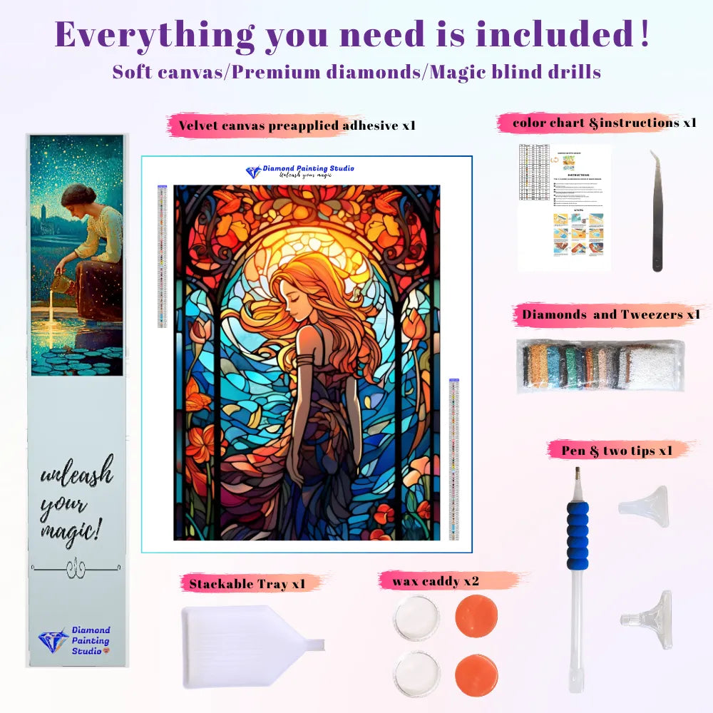 The intricate, wave-like structure of the stained glass guides your attention—a perfect pathway to the Flow State. Completing this luminous piece is an act of deep self-care, creating a final artwork that embodies Positive Energy and the lasting serenity of the sea.