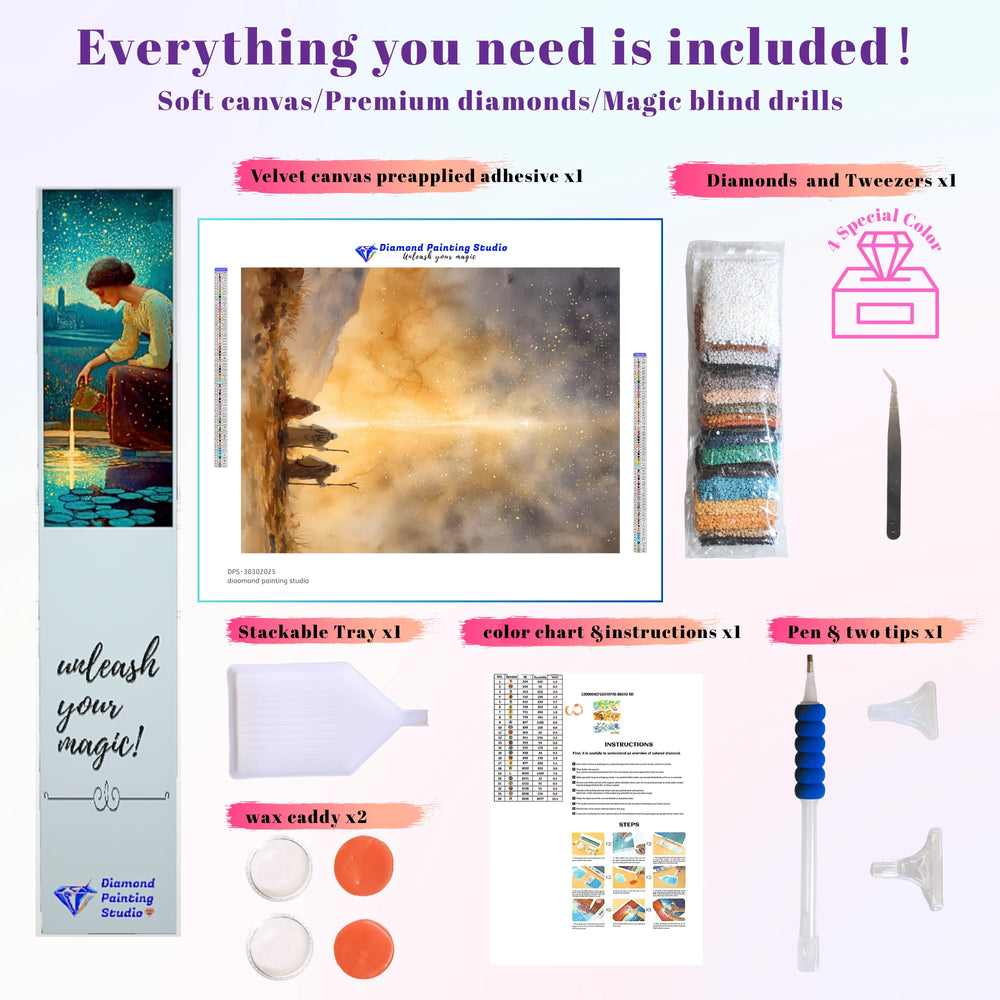 This design captures the profound moment of following the light. Figures gaze up at the brilliant Star of Bethlehem, which casts a warm, golden beam across the dark desert sky. The watercolor style evokes deep reverence and peace. This serene project lets you create a masterpiece that symbolizes hope, guidance, and the spiritual joy of the holiday season.